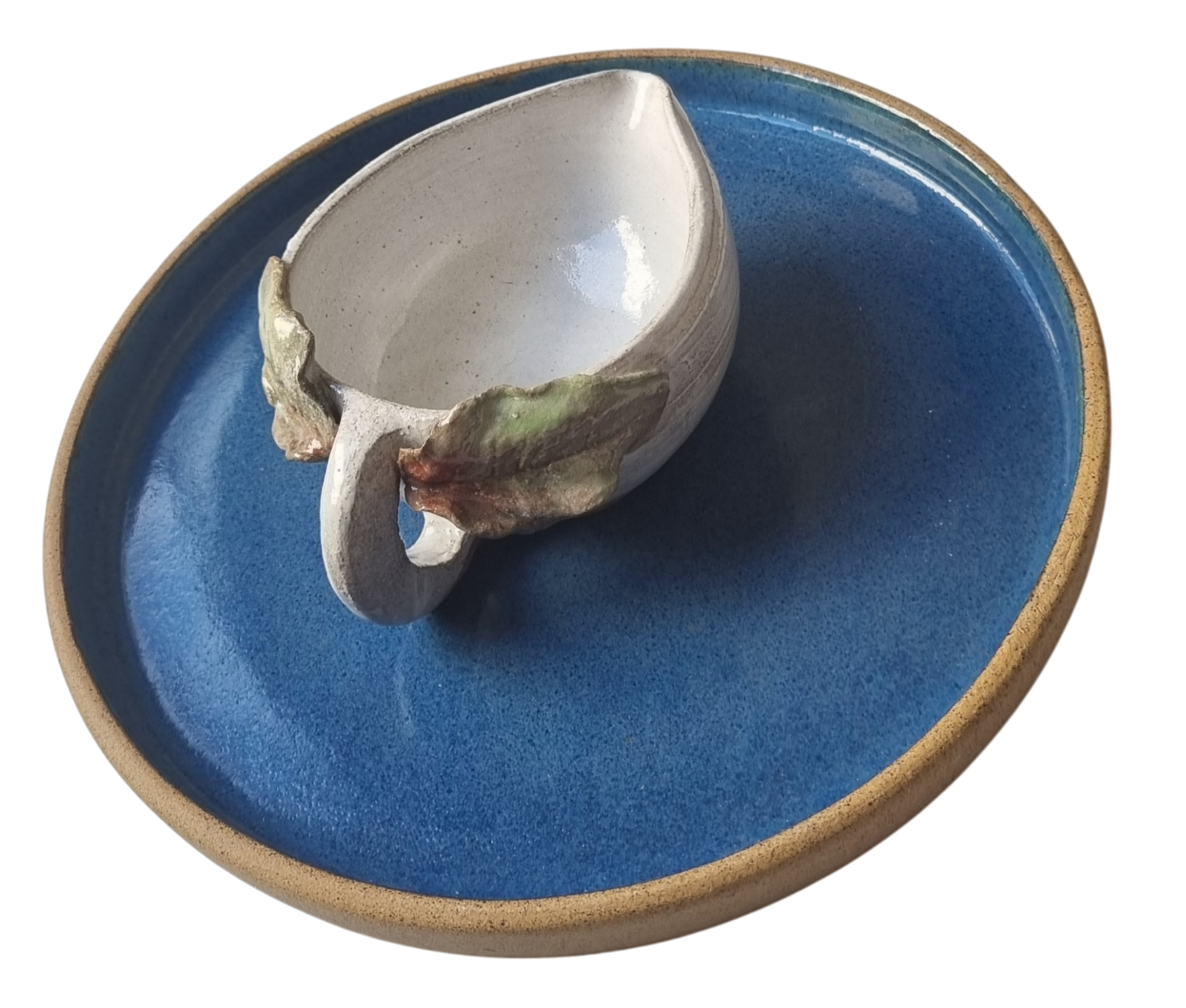 Kit de prato e molheira de Cerâmica desenhado a mão, queimado em alta temperatura a 1240⁰.