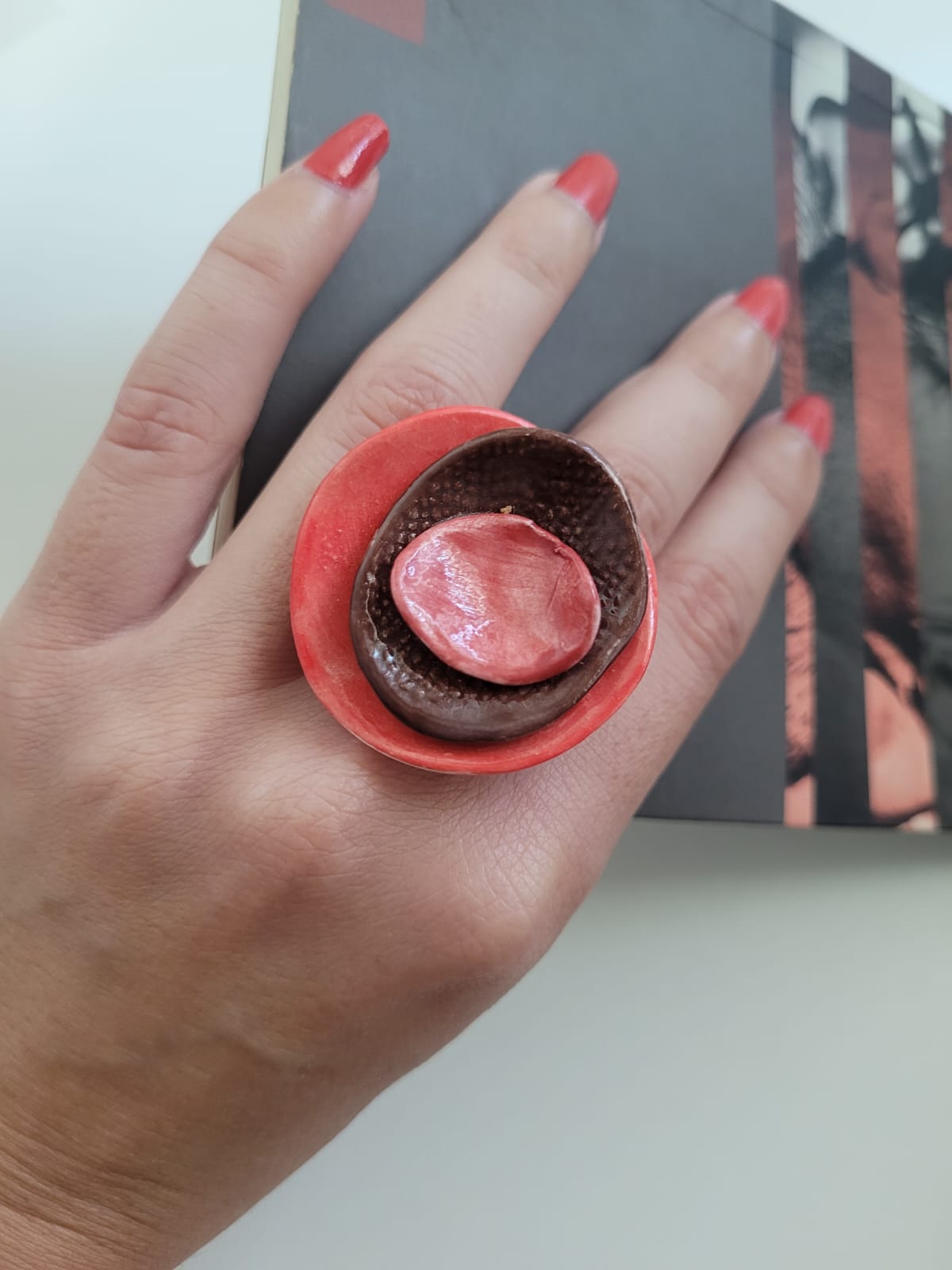 O anel Flower é uma peça artesanal criada para celebrar a leveza e o brilho do verão. Produzido em cerâmica modelada à mão, ele carrega a delicadeza e a singularidade de um trabalho artístico único — nenhum anel é exatamente igual ao outro.