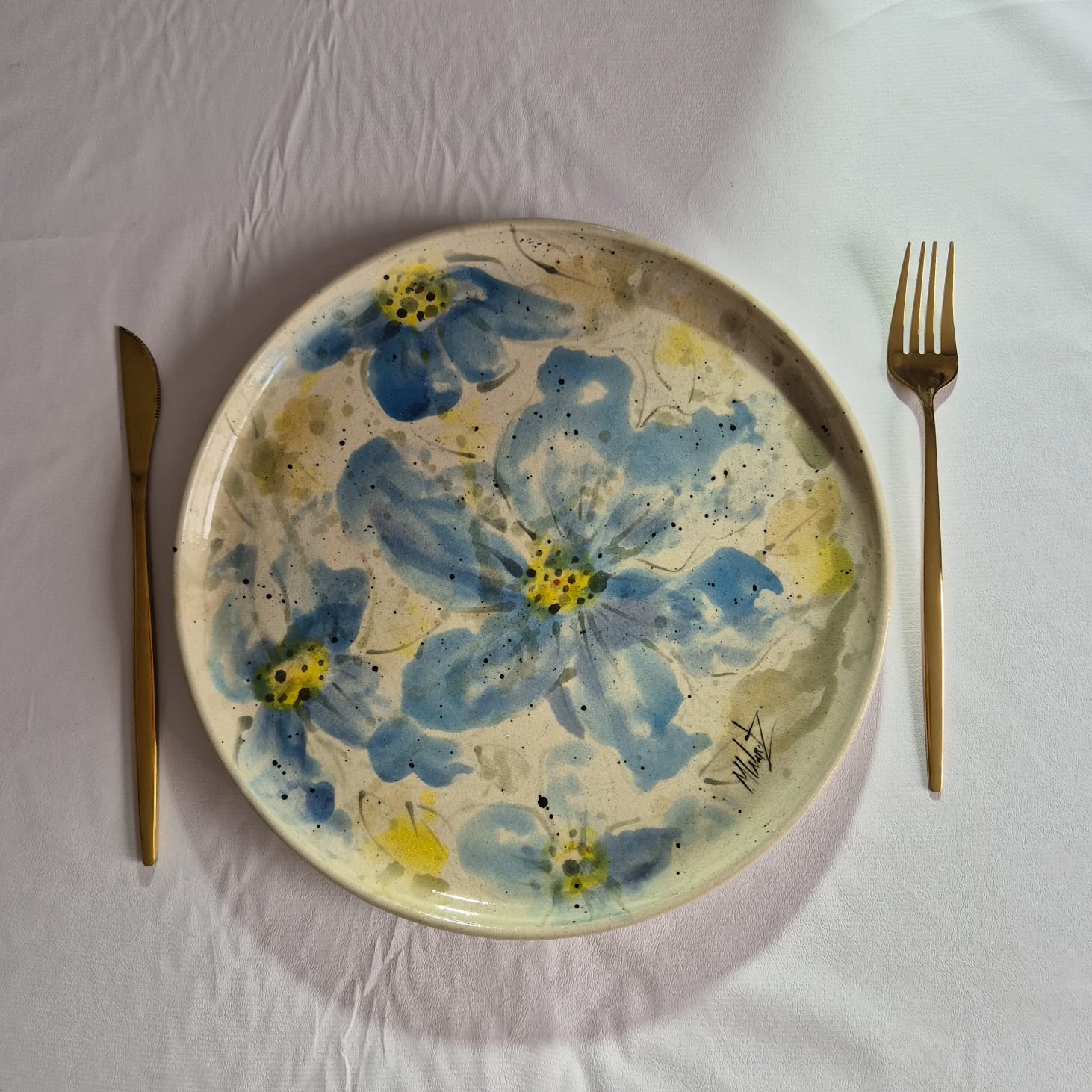 Prato de Cerâmica (gres) modelado a mão com pintura em aquarela. Queima a 1240º .