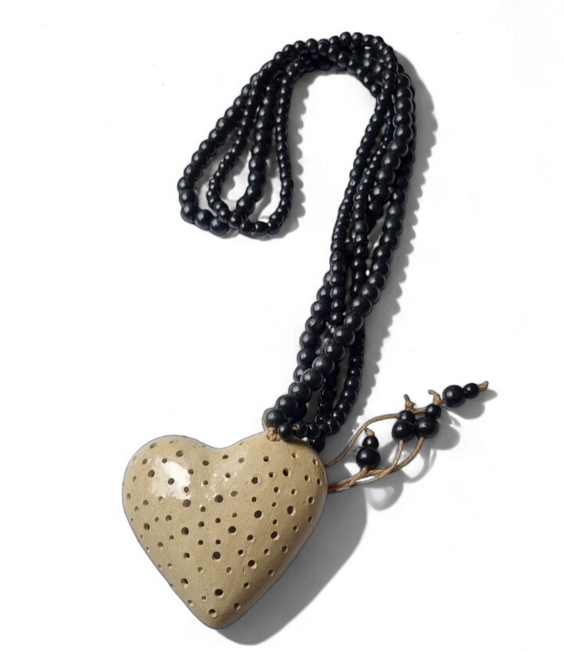 Um coração feito em cerâmica com acabameento em colar de madeira, transforma-se numa peça de decoração capaz de trazer encanto e suavidade a qualquer ambiente. Delicado e elegante, ele une o toque artesanal da cerâmica ao calor natural da madeira, criando um contraste harmonioso.